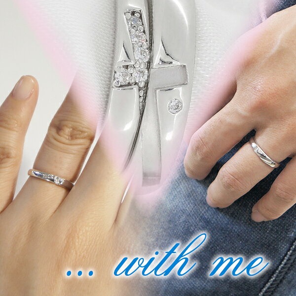 with me ハーフ クロス シルバー ペア リング 7〜19号 シルバーアクセサリー メンズ レディース お揃い 指輪 SV925 キュービックジルコニア パヴェ プレゼント ギフト ブランド メンズリング 男性用指輪 カップル 人気 おしゃれ