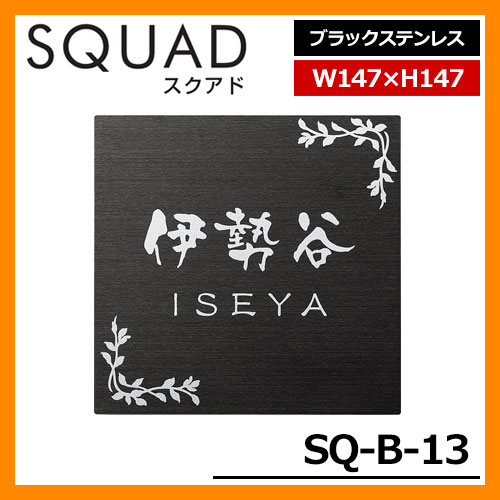 表札 ステンレス表札 SQUAD スクアド ブラックステンレス SQ-B-13 W147×H147×D9.5mm 板厚1.5mm 丸三タカギ ステンレス+黒アクリル板 送料無料