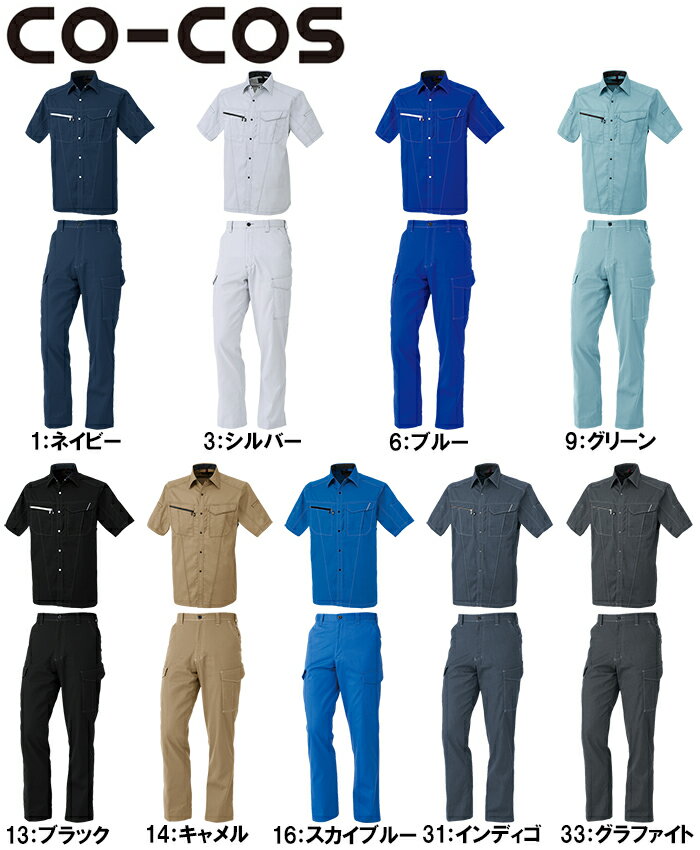 【上下セット送料無料】 コーコス (CO-COS) 半袖シャツ A-4077 (3L)&ノータックカーゴパンツ A-4075 (88cm〜106cm) セット (上下同色) 春夏用作業服 作業着 ズボン 取寄 【送料込と表記されている商品でも、北海道・沖縄県・離島は当店規定送料より650円値引】