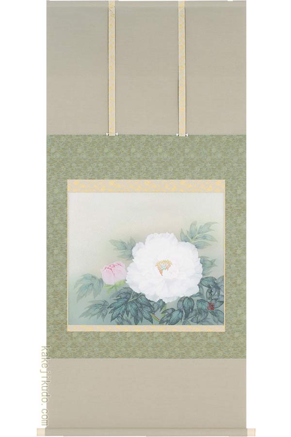 掛け軸 牡丹 (柳沢寿江) 送料無料 【掛軸】【一間床】【丈の短い掛軸】【花鳥画】